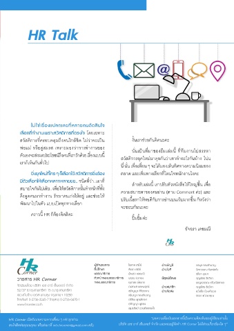 สนใจติดต่อคุณนฤดม หรือส่งมาที่ info.hrcorner@gmail.com ครับ บริษัท เอช อาร์ เซ็นเตอร์ จ�ากัด และคณะผู้จัดท�า HR Corner ไม่มีส่วนเกี่ยวข้องใด ๆ”