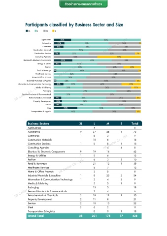 Participants classified by Business Sector and Size