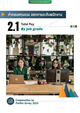 ตัวอย่างรายงานผลการส�ารวจ ค่าตอบแทนรวม แยกตามระดับพนักงาน HR Center Co., Ltd. Total Pay 2.1 By job grade HR Center Co., Ltd. HR Center Co., Ltd. HR Center Co., Ltd. HR Center Co., Ltd. HR Center Co., Ltd. Compensation by Position Survey 2025